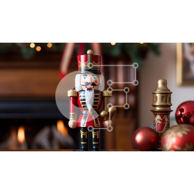Υπάρχει δυνατότητα προσωποποίησης με δική σας φωτογραφία και προσαρμογής διαστάσεων κατόπιν παραγγελίας. Το συγεκεριμενο puzzle παρουσιαζει Αυτή η εικόνα δείχνει ένα ειδώλιο καρυοθραύστη σε ένα τραπέζι μπροστά από ένα τζάκι. Ο καρυοθραύστης είναι όμορφα διακοσμημένος με κόκκινες κορδέλες και στολίδια, ενισχύοντας τη γιορτινή του εμφάνιση. Το δωμάτιο είναι διακοσμημένο με διάφορα χριστουγεννιάτικα στολίδια, όπως χρ