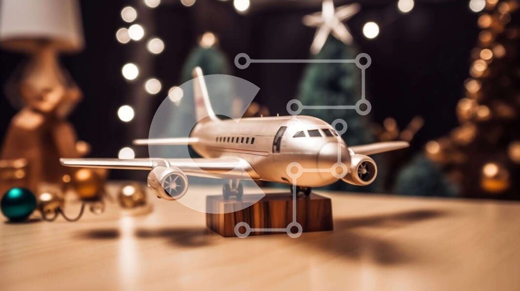Υπάρχει δυνατότητα προσωποποίησης με δική σας φωτογραφία και προσαρμογής διαστάσεων κατόπιν παραγγελίας. Το συγεκεριμενο puzzle παρουσιαζει Αυτή η εικόνα δείχνει ένα ασημένιο παιχνίδι αεροπλάνο τοποθετημένο σε ένα τραπέζι μπροστά από μια ομάδα χριστουγεννιάτικων δέντρων. Το αεροπλάνο μπορεί να χρησιμεύσει ως διακοσμητικό μοντέλο ή ως διακοσμητικό κομμάτι κατά την περίοδο των διακοπών. Ένα σετ από φώτα φωτίζει τη σ