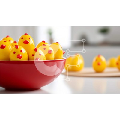 Υπάρχει δυνατότητα προσωποποίησης με δική σας φωτογραφία και προσαρμογής διαστάσεων κατόπιν παραγγελίας. Το συγεκεριμενο puzzle παρουσιαζει Αυτή η εικόνα δείχνει ένα κόκκινο μπολ γεμάτο με μικρά, κίτρινα πλαστικά κοτόπουλα διαφόρων σχημάτων και μεγεθών. Το τραπέζι χρησιμεύει ως φόντο και η διάταξη προτείνει ότι αυτά τα αντικείμενα μπορούν να χρησιμοποιηθούν ως μπομπονιέρες ή διακοσμητικά για μια γιορτή με θέμα το