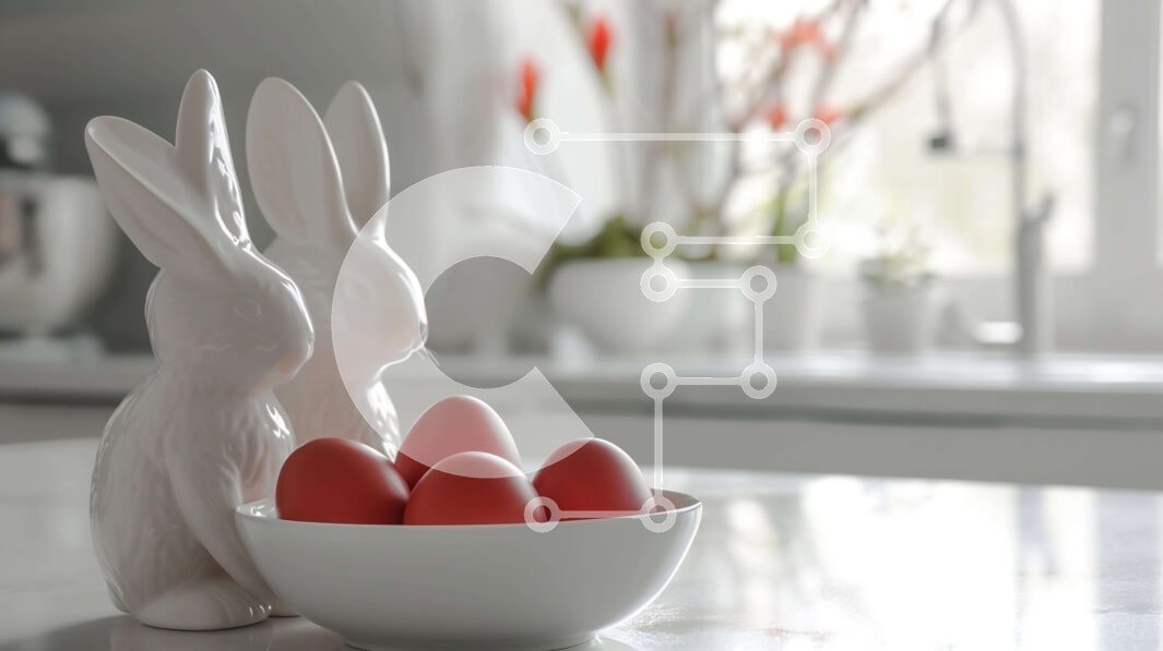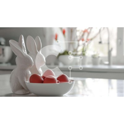 Υπάρχει δυνατότητα προσωποποίησης με δική σας φωτογραφία και προσαρμογής διαστάσεων κατόπιν παραγγελίας. Το συγεκεριμενο puzzle παρουσιαζει Η εικόνα παρουσιάζει δύο λευκά ειδώλια κουνελιού τοποθετημένα σε ένα μπολ γεμάτο με κόκκινα αυγά. Ένα από τα κουνελάκια είναι στραμμένο μακριά από την κάμερα ενώ το άλλο είναι στραμμένο προς το μέρος της. Επιπλέον, υπάρχει ένα άδειο μπολ στον πάγκο, που πιθανώς προορίζεται για