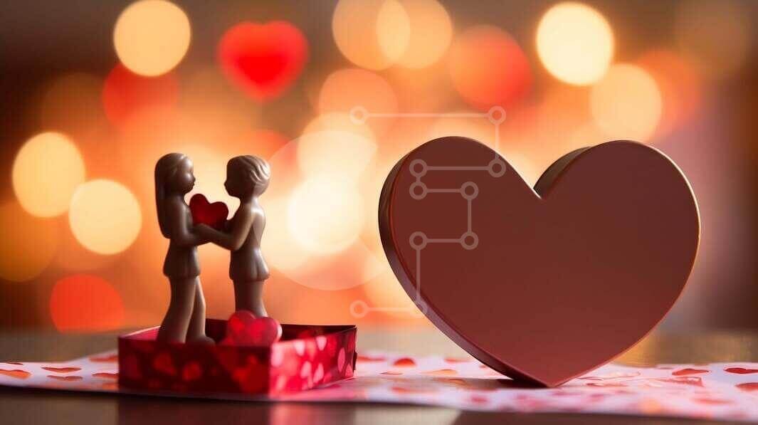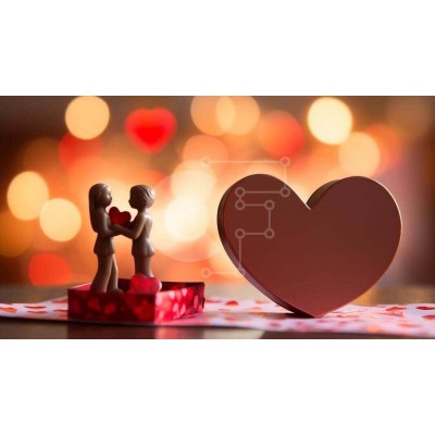 Υπάρχει δυνατότητα προσωποποίησης με δική σας φωτογραφία και προσαρμογής διαστάσεων κατόπιν παραγγελίας. Το συγεκεριμενο puzzle παρουσιαζει Αυτή η εικόνα παρουσιάζει δύο ειδώλια, το ένα κρατά ένα κουτί σοκολάτας σε σχήμα καρδιάς και το άλλο να στέκεται δίπλα του. Η σκηνή είναι φωτισμένη, υποδηλώνοντας μια ρομαντική ατμόσφαιρα για τους εορτασμούς του Αγίου Βαλεντίνου. Διάσπαρτες κόκκινες καρδιές προσθέτουν στο γιορ