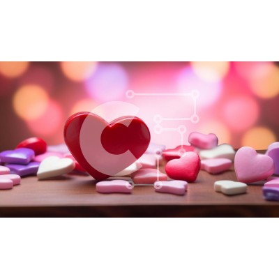 Υπάρχει δυνατότητα προσωποποίησης με δική σας φωτογραφία και προσαρμογής διαστάσεων κατόπιν παραγγελίας. Το συγεκεριμενο puzzle παρουσιαζει Αυτή η εικόνα δείχνει μια κόκκινη καραμέλα σε σχήμα καρδιάς τοποθετημένη πάνω από μια ποικιλία από πολύχρωμες καραμέλες που είναι διάσπαρτες σε ένα τραπέζι. Το φόντο φωτίζεται, δημιουργώντας μια ζωντανή και φιλόξενη ατμόσφαιρα. Υπάρχει επίσης άφθονος διαθέσιμος χώρος για τους