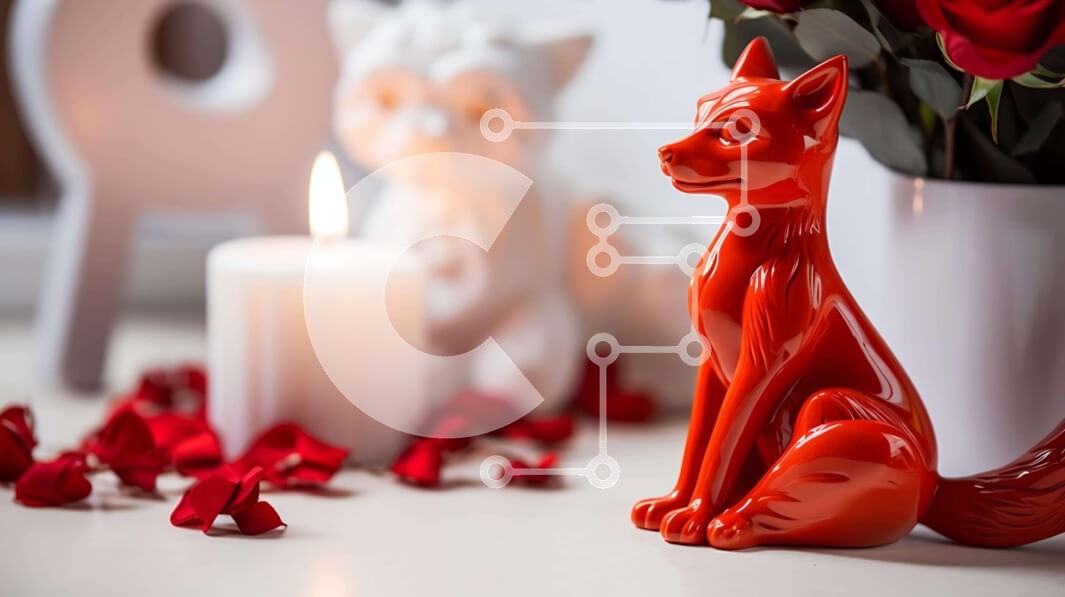 Υπάρχει δυνατότητα προσωποποίησης με δική σας φωτογραφία και προσαρμογής διαστάσεων κατόπιν παραγγελίας. Το συγεκεριμενο puzzle παρουσιαζει Αυτή η εικόνα απεικονίζει μια ρομαντική σκηνή με ένα ειδώλιο πορτοκαλί αλεπούς που κάθεται δίπλα σε ένα κερί και ροδοπέταλα. Υπάρχουν πολλά κόκκινα τριαντάφυλλα διάσπαρτα γύρω από το τραπέζι, δημιουργώντας μια συμβολική αναπαράσταση της Ημέρας του Αγίου Βαλεντίνου. Ένα λευκό β