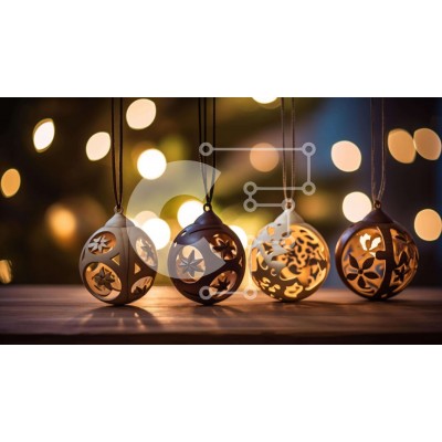 Υπάρχει δυνατότητα προσωποποίησης με δική σας φωτογραφία και προσαρμογής διαστάσεων κατόπιν παραγγελίας. Το συγεκεριμενο puzzle παρουσιαζει Αυτή η εικόνα παρουσιάζει μια ομάδα από ξύλινα στολίδια που κρέμονται από κορδόνια. Κάθε στολίδι είναι μοναδικά διακοσμημένο με διαφορετικά σχέδια και μοτίβα. Το φόντο διαθέτει πολλά φώτα, δημιουργώντας μια εορταστική ατμόσφαιρα. Αυτά τα διακοσμητικά μπορούν να χρησιμοποιηθούν