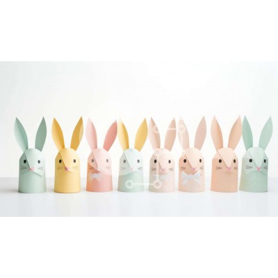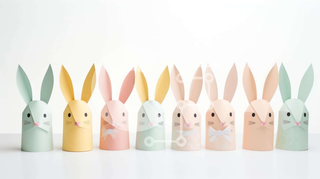 Υπάρχει δυνατότητα προσωποποίησης με δική σας φωτογραφία και προσαρμογής διαστάσεων κατόπιν παραγγελίας. Το συγεκεριμενο puzzle παρουσιαζει Αυτή η εικόνα παρουσιάζει μια σειρά από πολύχρωμα χάρτινα κουνέλια, το καθένα με το δικό του ξεχωριστό σχήμα και χρώμα. Τα κουνελάκια είναι τακτοποιημένα και μπορούν να χρησιμοποιηθούν ως διακοσμητικά για ένα πάρτι ή γιορτή με θέμα το Πάσχα ή ως διακοσμητικά αντικείμενα για το