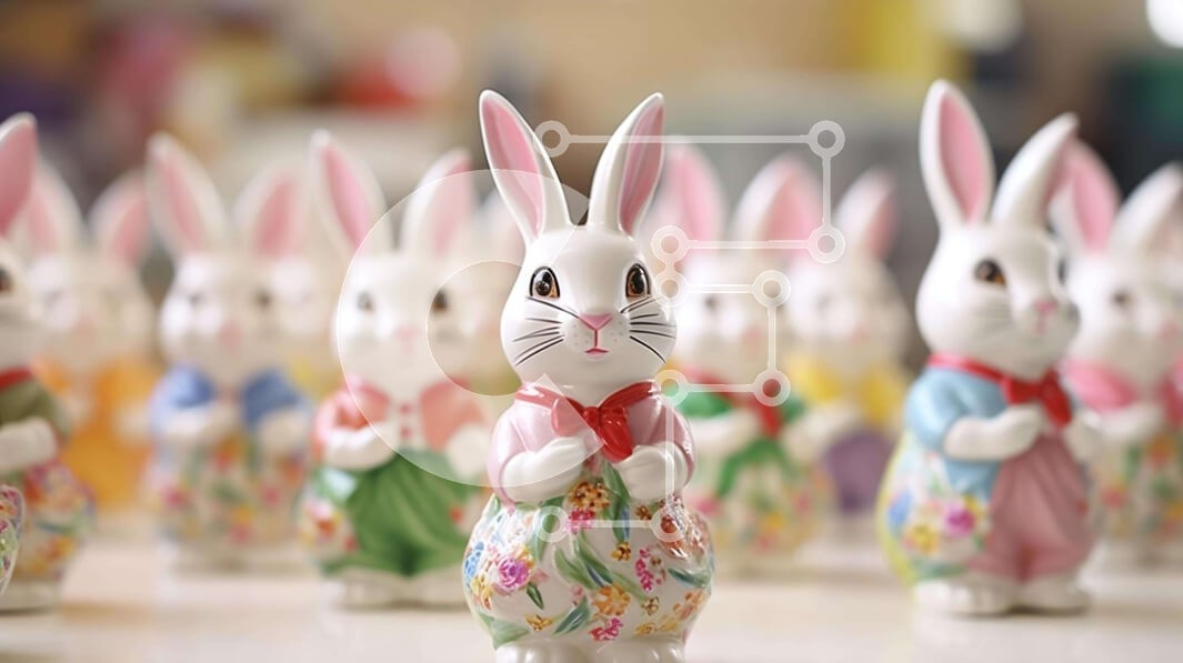 Υπάρχει δυνατότητα προσωποποίησης με δική σας φωτογραφία και προσαρμογής διαστάσεων κατόπιν παραγγελίας. Το συγεκεριμενο puzzle παρουσιαζει Αυτή η εικόνα παρουσιάζει μια σαγηνευτική συλλογή από κεραμικά ειδώλια κουνελιών σε διάφορα χρώματα και στυλ, τακτοποιημένα παρατεταγμένα σε ένα τραπέζι. Αυτά τα αξιολάτρευτα κουνελάκια είναι πιθανότατα μέρος μιας γιορτής του Πάσχα, προσθέτοντας μια εορταστική και χαρούμενη πι