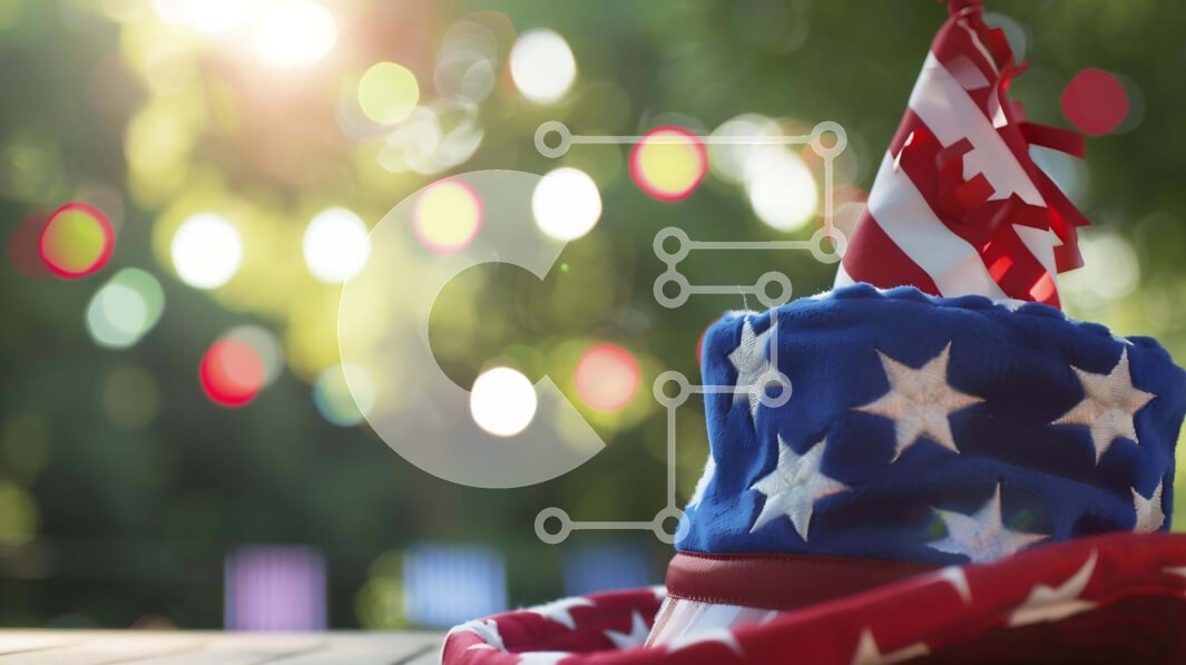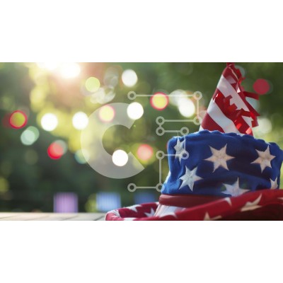 Υπάρχει δυνατότητα προσωποποίησης με δική σας φωτογραφία και προσαρμογής διαστάσεων κατόπιν παραγγελίας. Το συγεκεριμενο puzzle παρουσιαζει Η εικόνα δείχνει ένα εορταστικό καπέλο για πάρτι με μοτίβο αμερικανικής σημαίας, τοποθετημένο σε ένα τραπέζι με φόντο πράσινο φύλλωμα, που υποδηλώνει μια υπαίθρια γιορτή. Η σκηνή φωτίζεται από διάσπαρτα φώτα, ενισχύοντας τη γιορτινή ατμόσφαιρα. Ένα μοναδικό puzzle που συνδυάζ
