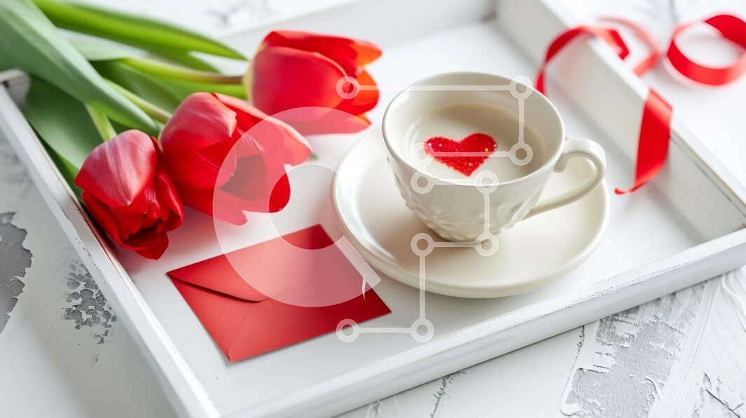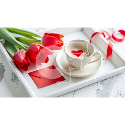 Υπάρχει δυνατότητα προσωποποίησης με δική σας φωτογραφία και προσαρμογής διαστάσεων κατόπιν παραγγελίας. Το συγεκεριμενο puzzle παρουσιαζει Αυτή η εικόνα παρουσιάζει ένα φλιτζάνι καφέ σε σχήμα καρδιάς τοποθετημένο σε ένα δίσκο, που περιβάλλεται από κόκκινες τουλίπες και τριαντάφυλλα. Ένας φάκελος φαίνεται στο πρώτο πλάνο, προσθέτοντας τη ρομαντική αίσθηση της σκηνής. Ένα μοναδικό puzzle που συνδυάζει ποιότητα, αι