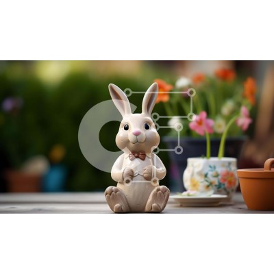 Υπάρχει δυνατότητα προσωποποίησης με δική σας φωτογραφία και προσαρμογής διαστάσεων κατόπιν παραγγελίας. Το συγεκεριμενο puzzle παρουσιαζει Η εικόνα απεικονίζει ένα λευκό ειδώλιο κουνελιού που κάθεται σε ένα τραπέζι εξωτερικού χώρου, δίπλα σε πολλά φυτά και λουλούδια σε γλάστρες. Μπορεί να είναι μέρος μιας διακόσμησης με θέμα το Πάσχα ή μπορεί απλώς να τοποθετηθεί εκεί για αισθητικούς λόγους. Υπάρχουν επίσης μερικ
