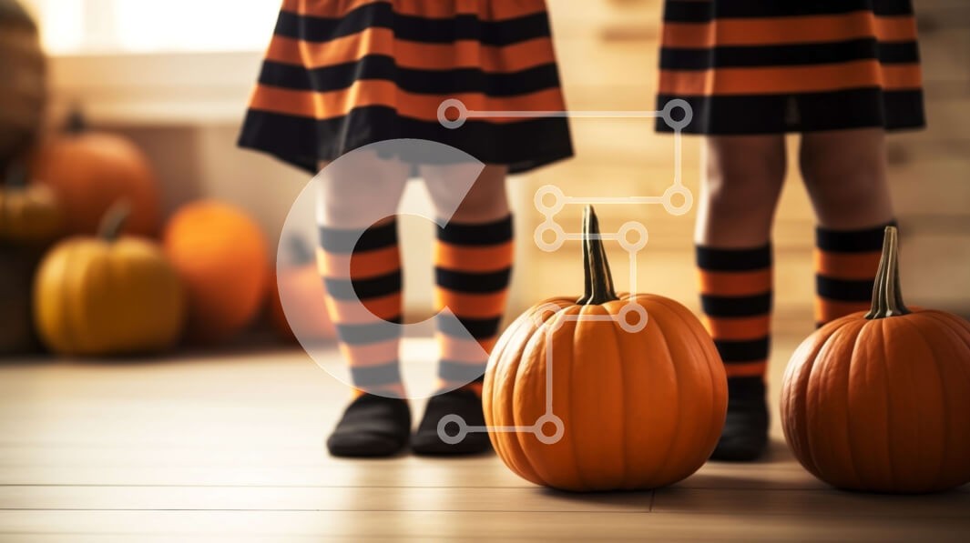 Υπάρχει δυνατότητα προσωποποίησης με δική σας φωτογραφία και προσαρμογής διαστάσεων κατόπιν παραγγελίας. Το συγεκεριμενο puzzle παρουσιαζει Αυτή η εικόνα αποτυπώνει την ουσία του εορτασμού του Halloween, με δύο παιδιά ντυμένα με μαύρα και πορτοκαλί ριγέ ρούχα. Στέκονται δίπλα σε κολοκύθες σε ένα ξύλινο πάτωμα, που περιβάλλονται από διακοσμητικά. Η σκηνή αποπνέει εορταστικό πνεύμα και δημιουργεί μια απόκοσμη ατμόσφ
