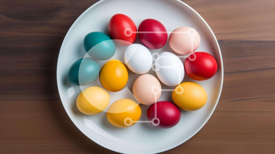 Υπάρχει δυνατότητα προσωποποίησης με δική σας φωτογραφία και προσαρμογής διαστάσεων κατόπιν παραγγελίας. Το συγεκεριμενο puzzle παρουσιαζει Η εικόνα δείχνει ένα λευκό πιάτο στολισμένο με πολλά ζωντανά πασχαλινά αυγά. Αυτά τα αυγά είναι τοποθετημένα με τάξη, εμφανίζοντας τα διαφορετικά μεγέθη και σχήματα τους. Η σύνθεση υποδηλώνει μια εορταστική ατμόσφαιρα, ιδανική για έργα με θέμα το Πάσχα. Ένα μοναδικό puzzle πο