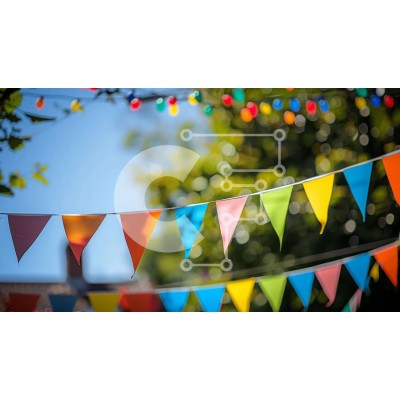 Υπάρχει δυνατότητα προσωποποίησης με δική σας φωτογραφία και προσαρμογής διαστάσεων κατόπιν παραγγελίας. Το συγεκεριμενο puzzle παρουσιαζει Η εικόνα παρουσιάζει μια σειρά από πολύχρωμες σημαίες που κρέμονται από τα δέντρα στο πρώτο πλάνο. Υπάρχουν επίσης πολλά φωτεινά χρώματα, τα οποία προσθέτουν στη συνολική οπτική έλξη της σκηνής. Είναι πιθανό αυτές οι διακοσμήσεις να αποτελούν μέρος μιας εκδήλωσης ή γιορτής και