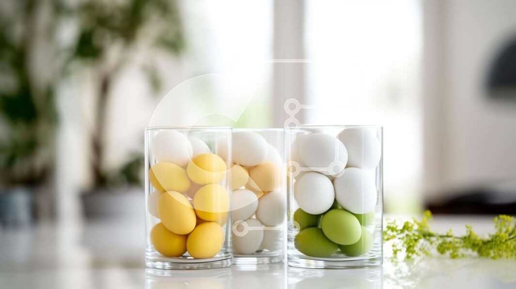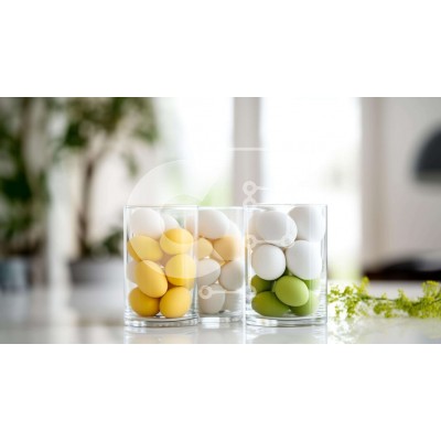 Υπάρχει δυνατότητα προσωποποίησης με δική σας φωτογραφία και προσαρμογής διαστάσεων κατόπιν παραγγελίας. Το συγεκεριμενο puzzle παρουσιαζει Η εικόνα παρουσιάζει τρία διαφανή γυάλινα βάζα γεμάτα με κίτρινα, πράσινα και λευκά πασχαλινά αυγά. Υπάρχει επίσης ένα μικρό φυτό στη μέση του τραπεζιού, το οποίο θα μπορούσε να χρησιμοποιηθεί για να διακοσμήσει τον χώρο ή να δώσει επιπλέον οπτικό ενδιαφέρον. Συνολικά, η εικόν
