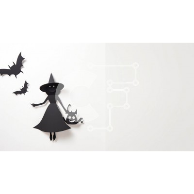 Υπάρχει δυνατότητα προσωποποίησης με δική σας φωτογραφία και προσαρμογής διαστάσεων κατόπιν παραγγελίας. Το συγεκεριμενο puzzle παρουσιαζει Αυτή η εικόνα παρουσιάζει μια ασπρόμαυρη χάρτινη περικοπή μιας παλιομοδίτικης μάγισσας που εμφανίζεται σε έναν τοίχο, με τις νυχτερίδες να πετούν στο βάθος. Η σιλουέτα της μάγισσας υποδηλώνει ότι είναι μέρος μιας παράστασης ή διακόσμησης για το Halloween. Υπάρχουν επίσης διάσπ