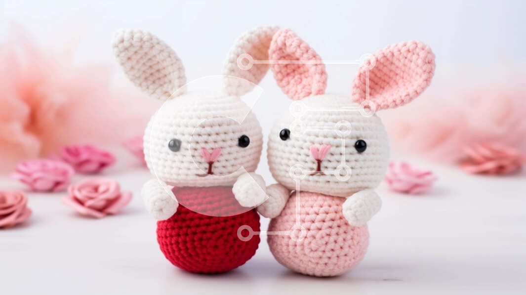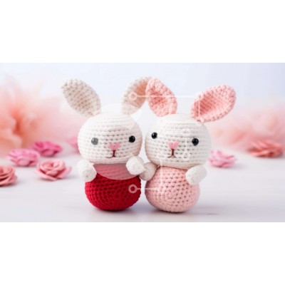 Υπάρχει δυνατότητα προσωποποίησης με δική σας φωτογραφία και προσαρμογής διαστάσεων κατόπιν παραγγελίας. Το συγεκεριμενο puzzle παρουσιαζει Αυτή η εικόνα παρουσιάζει δύο κροσέ κουνελάκια που κάθονται το ένα δίπλα στο άλλο σε μια λευκή επιφάνεια. Περιτριγυρίζονται από ροζ και κόκκινα λουλούδια, υποδηλώνοντας ότι μπορεί να έχουν φτιαχτεί για την Ημέρα του Αγίου Βαλεντίνου ή κάποια άλλη ειδική περίσταση. Τα παιχνίδια