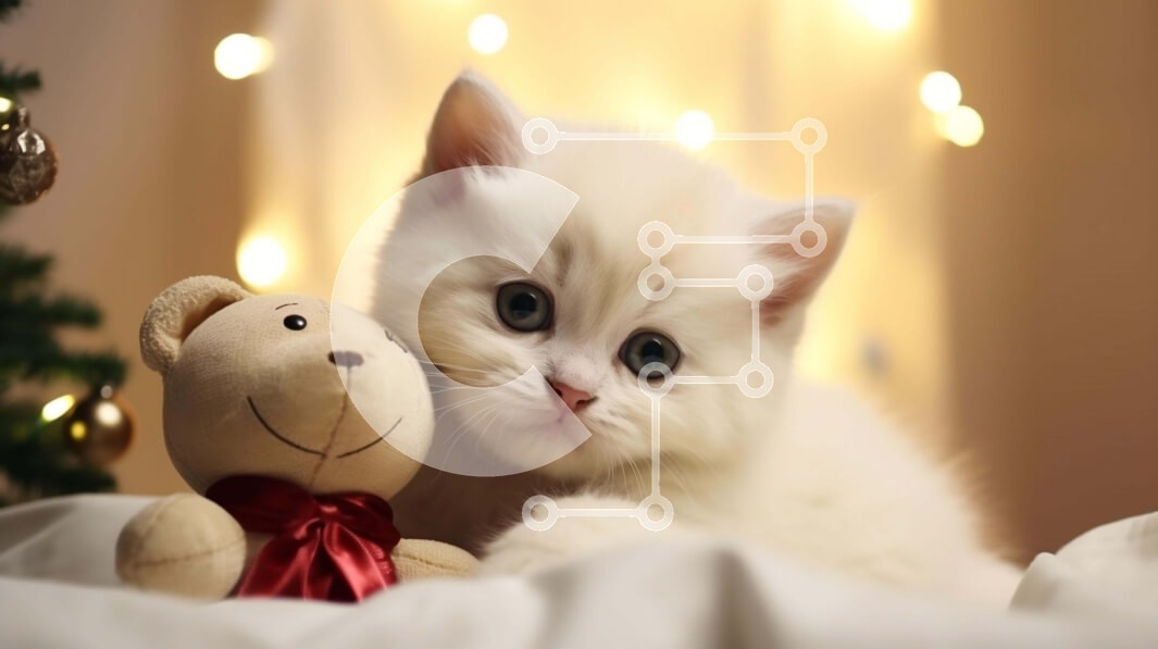 Υπάρχει δυνατότητα προσωποποίησης με δική σας φωτογραφία και προσαρμογής διαστάσεων κατόπιν παραγγελίας. Το συγεκεριμενο puzzle παρουσιαζει Αυτή η εικόνα απεικονίζει ένα λευκό γατάκι ξαπλωμένο πάνω από ένα διακοσμημένο αρκουδάκι. Στο βάθος, υπάρχει ένα μικρό χριστουγεννιάτικο δέντρο και γύρω φωτάκια που προσθέτουν στη γιορτινή αίσθηση. Αυτή η συγκινητική σκηνή αποτυπώνει την ουσία της περιόδου των διακοπών. Ένα μ