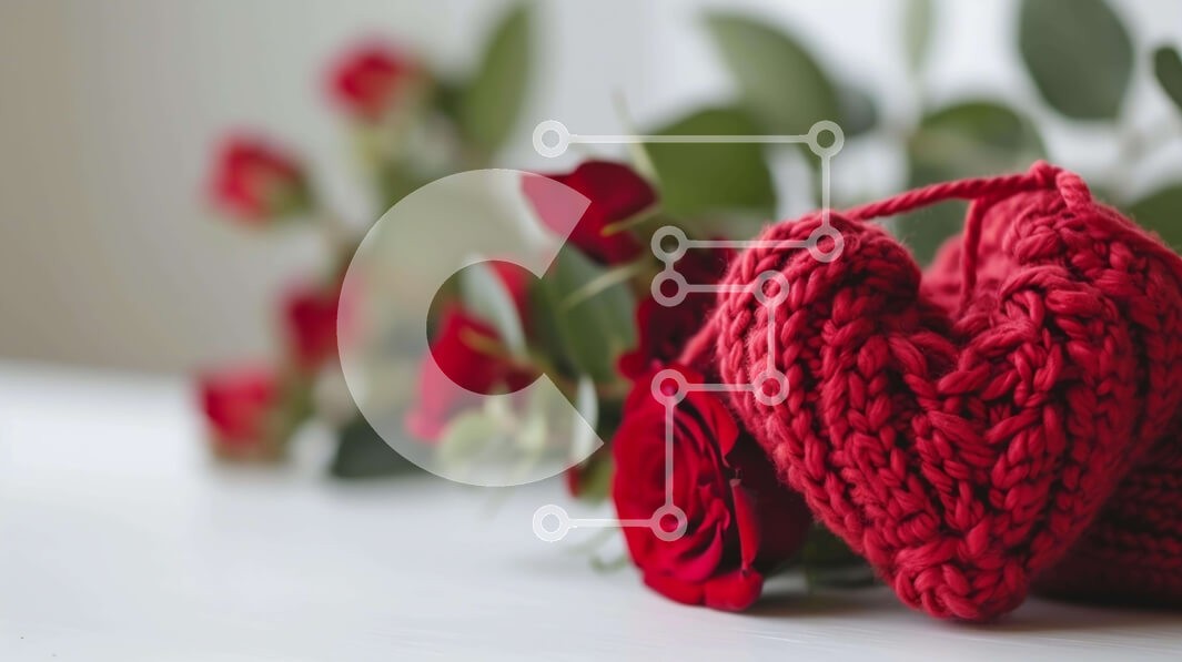 Υπάρχει δυνατότητα προσωποποίησης με δική σας φωτογραφία και προσαρμογής διαστάσεων κατόπιν παραγγελίας. Το συγεκεριμενο puzzle παρουσιαζει Αυτή η εικόνα παρουσιάζει δύο κόκκινα πλεκτά πουλόβερ σε σχήμα καρδιάς σε ένα λευκό τραπέζι. Κόκκινα τριαντάφυλλα είναι διάσπαρτα γύρω από το τραπέζι, δημιουργώντας ένα ρομαντικό σκηνικό. Στο βάθος, οι βελόνες πλεξίματος είναι ορατές, προσθέτοντας στη ζεστή και έξυπνη ατμόσφαι