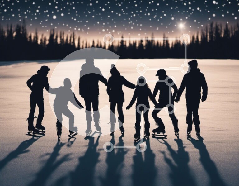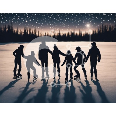 Υπάρχει δυνατότητα προσωποποίησης με δική σας φωτογραφία και προσαρμογής διαστάσεων κατόπιν παραγγελίας. Το συγεκεριμενο puzzle παρουσιαζει Αυτή η εικόνα απεικονίζει μια ομάδα ανθρώπων που κάνουν χαρούμενα πατινάζ στο χιόνι. Φαίνονται πιασμένοι χέρι-χέρι, δημιουργώντας μια αίσθηση ενότητας και παιχνιδιού. Οι σιλουέτες άλλων ατόμων μπορούν να παρατηρηθούν στα πλάγια, υποδηλώνοντας μια μεγαλύτερη συγκέντρωση ή συμμε