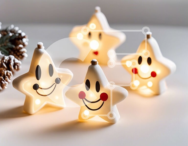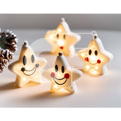 Υπάρχει δυνατότητα προσωποποίησης με δική σας φωτογραφία και προσαρμογής διαστάσεων κατόπιν παραγγελίας. Το συγεκεριμενο puzzle παρουσιαζει Αυτή η εικόνα παρουσιάζει μια ομάδα τεσσάρων κεραμικών ειδωλίων σε σχήμα αστεριού με χαμογελαστά πρόσωπα. Τοποθετούνται δίπλα σε κουκουνάρια, προσθέτοντας μια γιορτινή πινελιά στη σύνθεση. Αυτά τα διακοσμητικά αντικείμενα μπορούν να χρησιμοποιηθούν ως δώρα ή διακοσμητικά για ε