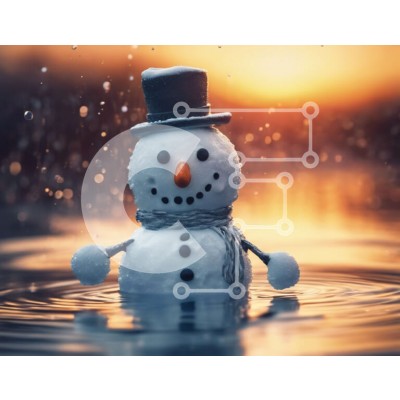 Υπάρχει δυνατότητα προσωποποίησης με δική σας φωτογραφία και προσαρμογής διαστάσεων κατόπιν παραγγελίας. Το συγεκεριμενο puzzle παρουσιαζει Αυτή η εικόνα δείχνει ένα ειδώλιο χιονάνθρωπου που κάθεται στο νερό, με ένα κλασικό καπέλο. Ανακαλεί τη γαλήνια ατμόσφαιρα ενός χειμωνιάτικου σκηνικού, με την πρόταση να πέφτει χιόνι που προσθέτει στη συνολική γοητεία. Ένα μοναδικό puzzle που συνδυάζει ποιότητα, αισθητική και