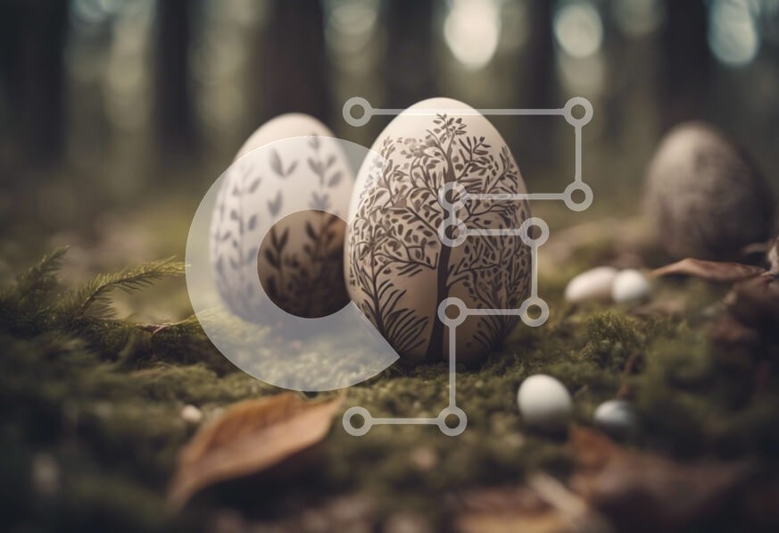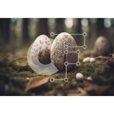 Υπάρχει δυνατότητα προσωποποίησης με δική σας φωτογραφία και προσαρμογής διαστάσεων κατόπιν παραγγελίας. Το συγεκεριμενο puzzle παρουσιαζει Αυτή η εικόνα παρουσιάζει τρία διακοσμημένα πασχαλινά αυγά τοποθετημένα σε ένα βρύο έδαφος σε ένα δάσος. Τα αυγά διαθέτουν περίπλοκα σχέδια εμπνευσμένα από δέντρα, προσθέτοντας μια εορταστική πινελιά στο φυσικό περιβάλλον. Πρόσθετα αυγά είναι διάσπαρτα τριγύρω, υπονοώντας μια