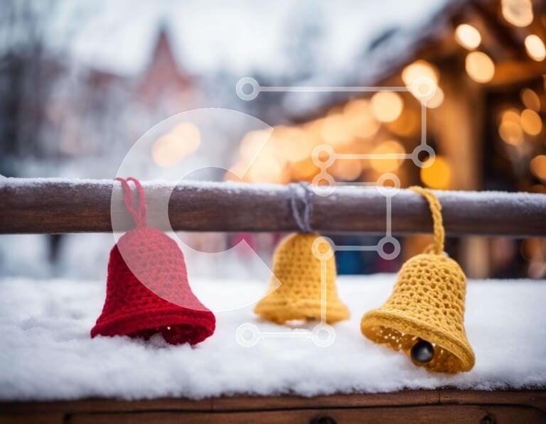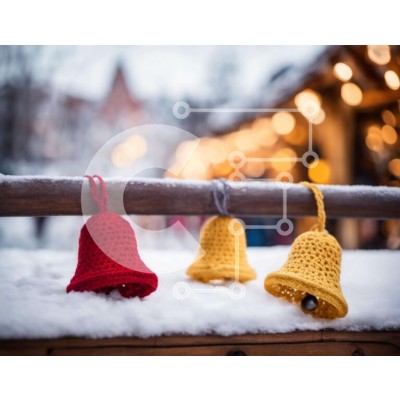 Υπάρχει δυνατότητα προσωποποίησης με δική σας φωτογραφία και προσαρμογής διαστάσεων κατόπιν παραγγελίας. Το συγεκεριμενο puzzle παρουσιαζει Αυτή η εικόνα παρουσιάζει τρία κροσέ κουδουνάκια που κρέμονται από ένα ξύλινο κιγκλίδωμα στο χιόνι. Οι καμπάνες είναι στολισμένες με κόκκινο, κίτρινο και πράσινο νήμα, δίνοντάς τους μια εορταστική εμφάνιση. Το χιονισμένο έδαφος ενισχύει περαιτέρω τη χειμωνιάτικη ατμόσφαιρα της