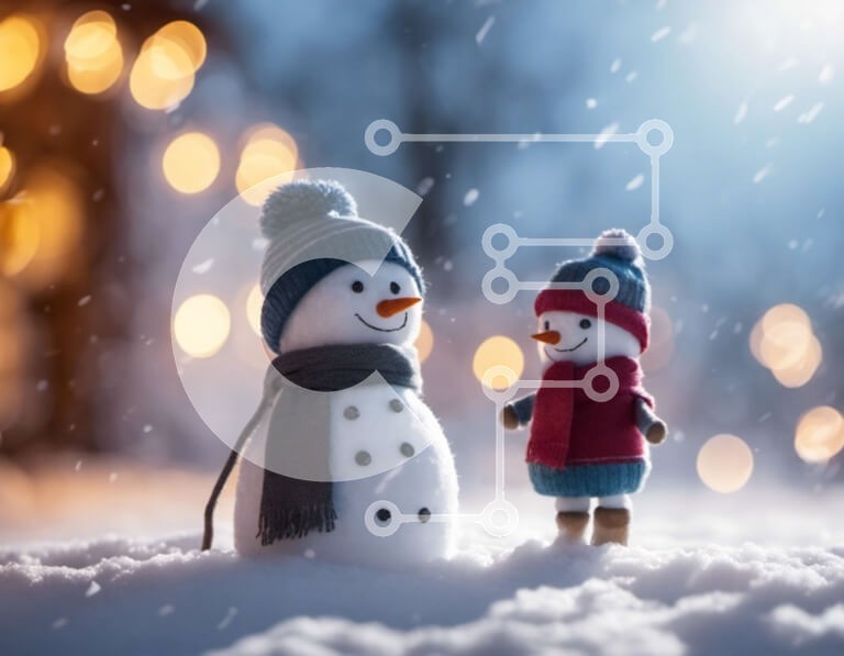 Υπάρχει δυνατότητα προσωποποίησης με δική σας φωτογραφία και προσαρμογής διαστάσεων κατόπιν παραγγελίας. Το συγεκεριμενο puzzle παρουσιαζει Αυτή η εικόνα παρουσιάζει δύο χιονάνθρωπους να στέκονται ο ένας δίπλα στον άλλο στο χιόνι. Είναι ντυμένοι με χειμερινή ενδυμασία με καπέλα και κασκόλ στο κεφάλι. Ένα φως λάμπει πίσω τους, προσθέτοντας στη γιορτινή ατμόσφαιρα της σκηνής. Ένα μοναδικό puzzle που συνδυάζει ποιότ