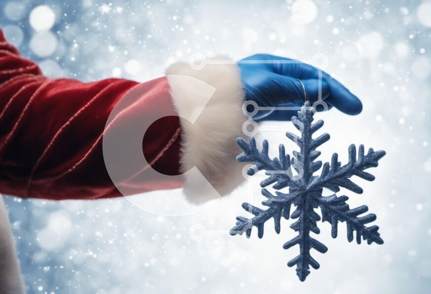 Υπάρχει δυνατότητα προσωποποίησης με δική σας φωτογραφία και προσαρμογής διαστάσεων κατόπιν παραγγελίας. Το συγεκεριμενο puzzle παρουσιαζει Αυτή η εικόνα παρουσιάζει τον Άγιο Βασίλη να κρατά μια διακοσμητική νιφάδα χιονιού. Το άτομο είναι ντυμένο με στολή του Άγιου Βασίλη και φοράει γάντια για να προστατεύει τα χέρια του από το κρύο. Το φόντο της εικόνας καλύπτεται από μπλε χιόνι, δημιουργώντας μια εορταστική ατμό