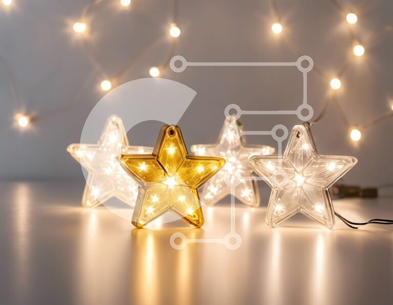 Υπάρχει δυνατότητα προσωποποίησης με δική σας φωτογραφία και προσαρμογής διαστάσεων κατόπιν παραγγελίας. Το συγεκεριμενο puzzle παρουσιαζει Αυτή η εικόνα παρουσιάζει τρία φώτα σε σχήμα αστεριού τοποθετημένα σε ένα τραπέζι με φώτα χορδών στο φόντο. Τα φώτα σε σχήμα αστεριού είναι κατασκευασμένα από πλαστικό, υποδεικνύοντας ότι προορίζονται για χρήση σε εσωτερικούς χώρους. Οι σειρές λευκών φώτων που περιβάλλουν τα α