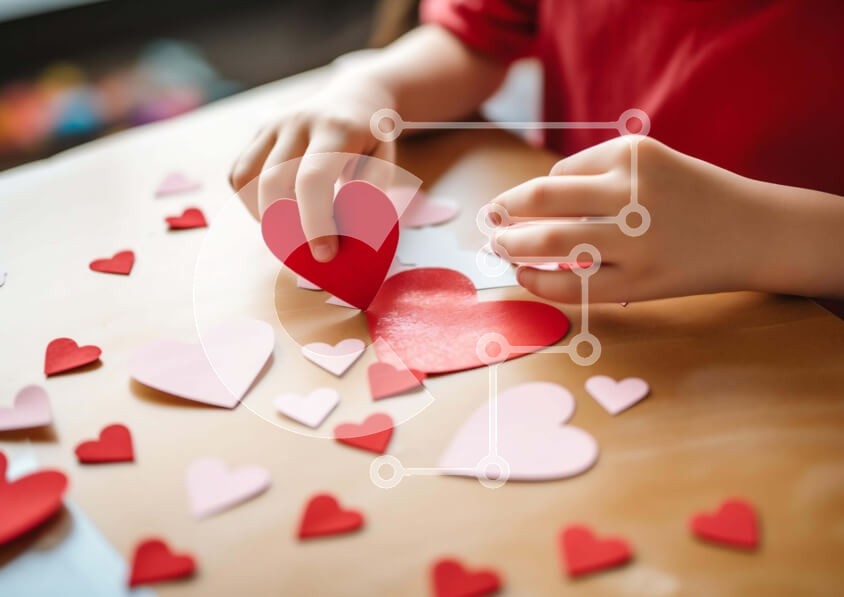 Υπάρχει δυνατότητα προσωποποίησης με δική σας φωτογραφία και προσαρμογής διαστάσεων κατόπιν παραγγελίας. Το συγεκεριμενο puzzle παρουσιαζει Η εικόνα δείχνει ένα παιδί που ασχολείται με τη δημιουργία εγκοπών σε σχήμα καρδιάς από κόκκινο χαρτί για τους εορτασμούς της Ημέρας του Αγίου Βαλεντίνου. Το δωμάτιο είναι διάσπαρτο με μικρά κομμάτια χαρτιού, υποδηλώνοντας μια δημιουργική δραστηριότητα χειροτεχνίας. Ένα μοναδ