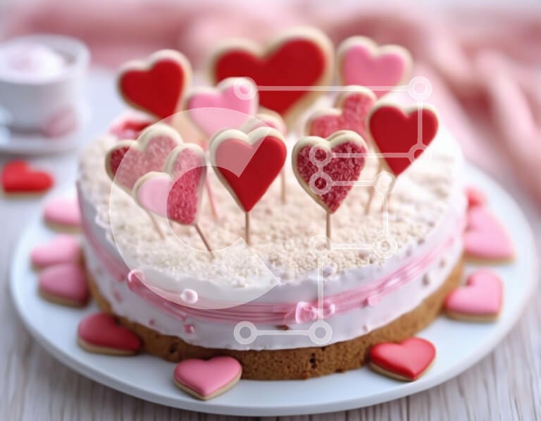 Υπάρχει δυνατότητα προσωποποίησης με δική σας φωτογραφία και προσαρμογής διαστάσεων κατόπιν παραγγελίας. Το συγεκεριμενο puzzle παρουσιαζει Αυτή η εικόνα παρουσιάζει ένα όμορφα διακοσμημένο κέικ με μπισκότα σε σχήμα καρδιάς τοποθετημένα πάνω σε ένα πιάτο. Ένα φλιτζάνι υπάρχει επίσης στο τραπέζι, προσθέτοντας την ατμόσφαιρα μιας γιορτής για την Ημέρα του Αγίου Βαλεντίνου. Η εικόνα αποτυπώνει την κομψότητα και τη δη