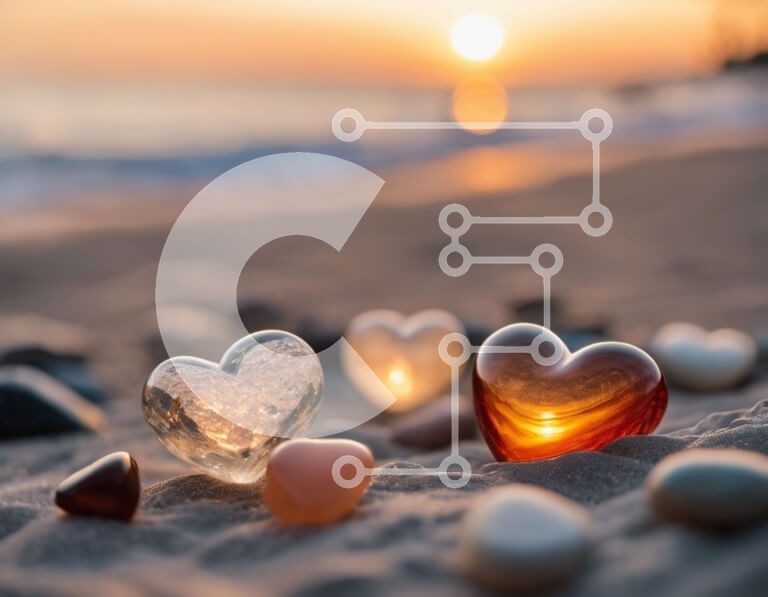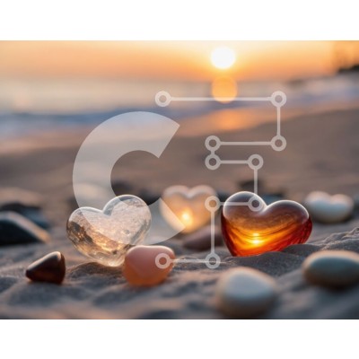 Υπάρχει δυνατότητα προσωποποίησης με δική σας φωτογραφία και προσαρμογής διαστάσεων κατόπιν παραγγελίας. Το συγεκεριμενο puzzle παρουσιαζει Αυτή η εικόνα απεικονίζει τρία γυάλινα ειδώλια σε σχήμα καρδιάς τοποθετημένα στην αμμώδη παραλία κατά τη διάρκεια του ηλιοβασιλέματος. Τα ζεστά χρώματα του ήλιου που δύει δημιουργούν μια ρομαντική ατμόσφαιρα και μικροί βράχοι και βότσαλα είναι διάσπαρτα γύρω από τα ειδώλια. Αυ