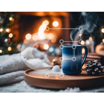 Υπάρχει δυνατότητα προσωποποίησης με δική σας φωτογραφία και προσαρμογής διαστάσεων κατόπιν παραγγελίας. Το συγεκεριμενο puzzle παρουσιαζει Αυτή η εικόνα δείχνει μια μπλε κούπα καφέ τοποθετημένη σε ένα δίσκο μπροστά από ένα ανοιχτό τζάκι. Ο ατμός που αναδύεται από την κούπα προσθέτει στη ζεστή ατμόσφαιρα και υπάρχουν διάσπαρτα πολλά κουκουνάρια, τα οποία μπορούν να χρησιμοποιηθούν για διακόσμηση. Περιλαμβάνεται επ