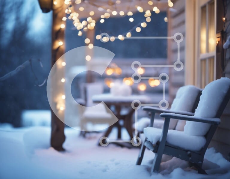 | Όνομα Προϊόντος | Intra Συλλεκτικό Ξύλινο Παζλ Plywood 4mm - Χιονισμένες καρέκλες σε μια μπροστινή βεράντα διακοσμημένη για τα Χριστούγεννα Σε Ξύλινο Κουτί - Διαστάσεις Puzzle: 10x10 cm – 25 κομμάτια |