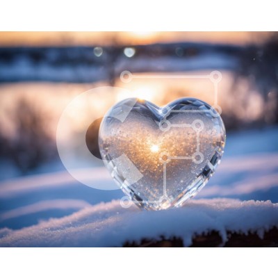 Υπάρχει δυνατότητα προσωποποίησης με δική σας φωτογραφία και προσαρμογής διαστάσεων κατόπιν παραγγελίας. Το συγεκεριμενο puzzle παρουσιαζει Αυτή η εικόνα παρουσιάζει ένα γλυπτό από πάγο σε σχήμα καρδιάς πάνω από ένα χιονισμένο τοπίο, με τον ήλιο να δύει πίσω του. Συμβολίζει την αγάπη, τη στοργή, την ειρήνη και τη γαλήνη κατά τη χειμερινή περίοδο. Το σχήμα της καρδιάς υποδηλώνει ότι είναι κατασκευασμένο από γυαλί,