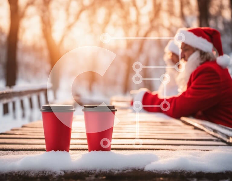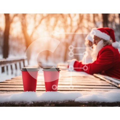 Υπάρχει δυνατότητα προσωποποίησης με δική σας φωτογραφία και προσαρμογής διαστάσεων κατόπιν παραγγελίας. Το συγεκεριμενο puzzle παρουσιαζει Αυτή η εικόνα παρουσιάζει δύο κόκκινα φλιτζάνια καφέ που κάθονται σε έναν ξύλινο πάγκο στο χιόνι. Δύο άτομα με ρούχα του Άγιου Βασίλη διακρίνονται να κάθονται στο παγκάκι και να απολαμβάνουν τον καφέ τους. Το σκηνικό τοποθετείται σε ένα χειμωνιάτικο τοπίο, με το διάσπαρτο χιόν