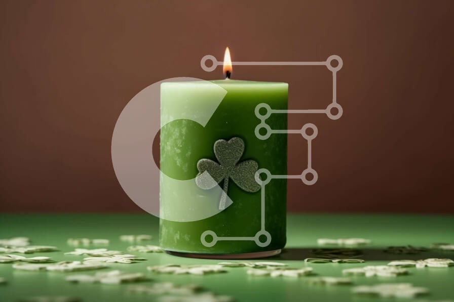 Υπάρχει δυνατότητα προσωποποίησης με δική σας φωτογραφία και προσαρμογής διαστάσεων κατόπιν παραγγελίας. Το συγεκεριμενο puzzle παρουσιαζει Αυτή η εικόνα παρουσιάζει ένα πράσινο κερί με τριφύλλια πάνω του. Το κερί είναι μια ζωντανή απόχρωση του πράσινου και έχει τριφύλλια που διακοσμούν την επιφάνειά του. Το φόντο είναι ένα ουδέτερο χρώμα, επιτρέποντας στο κερί να είναι το εστιακό σημείο της εικόνας. Ένα μοναδικό