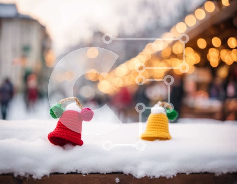 Υπάρχει δυνατότητα προσωποποίησης με δική σας φωτογραφία και προσαρμογής διαστάσεων κατόπιν παραγγελίας. Το συγεκεριμενο puzzle παρουσιαζει Αυτή η εικόνα παρουσιάζει δύο κροσέ καμπάνες τοποθετημένες σε έναν ξύλινο πάγκο που περιβάλλεται από χιόνι. Οι διακοσμήσεις με κόκκινα και κίτρινα νήματα υποδηλώνουν ότι έχουν θέμα τις γιορτές. Υπάρχουν επίσης άνθρωποι που περπατούν, υποδεικνύοντας πιθανώς ένα γεγονός ή μια γι