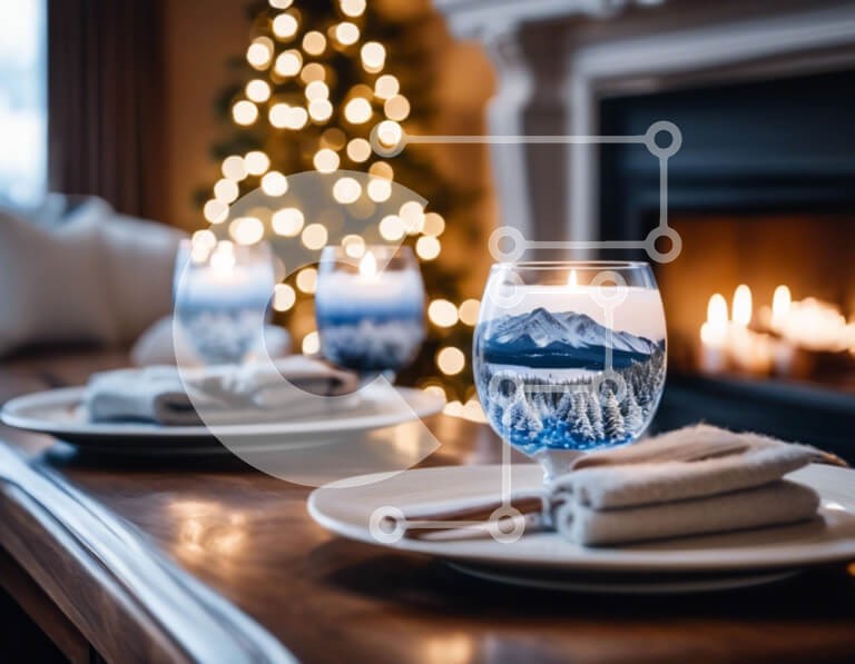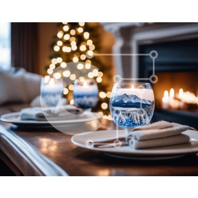Υπάρχει δυνατότητα προσωποποίησης με δική σας φωτογραφία και προσαρμογής διαστάσεων κατόπιν παραγγελίας. Το συγεκεριμενο puzzle παρουσιαζει Αυτή η εικόνα παρουσιάζει δύο ποτήρια κρασιού με σχέδιο με θέμα το βουνό, τοποθετημένα σε ένα τραπέζι μπροστά από ένα ανοιχτό τζάκι. Το τραπέζι είναι στολισμένο με χαρτοπετσέτες και κηροπήγια, δημιουργώντας μια ζεστή και φιλόξενη ατμόσφαιρα. Αυτά τα ποτήρια είναι ιδανικά για ν