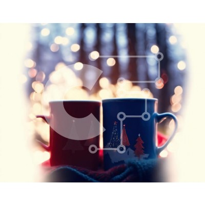 Υπάρχει δυνατότητα προσωποποίησης με δική σας φωτογραφία και προσαρμογής διαστάσεων κατόπιν παραγγελίας. Το συγεκεριμενο puzzle παρουσιαζει Αυτή η εικόνα παρουσιάζει δύο κούπες καφέ σε μια κουβέρτα, μια κόκκινη και μια μπλε. Και οι δύο κούπες είναι στολισμένες με χριστουγεννιάτικο δέντρο. Στο βάθος, η σκηνή είναι μερικώς θολή, αποκαλύπτοντας περισσότερα χριστουγεννιάτικα δέντρα. Η εικόνα παρουσιάζει επίσης το χιόν
