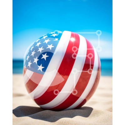 Υπάρχει δυνατότητα προσωποποίησης με δική σας φωτογραφία και προσαρμογής διαστάσεων κατόπιν παραγγελίας. Το συγεκεριμενο puzzle παρουσιαζει Η εικόνα δείχνει μια κόκκινη, λευκή και μπλε μπάλα παραλίας να κάθεται στην άμμο κοντά στον ωκεανό. Η μπάλα είναι διακοσμημένη με ένα σχέδιο αμερικανικής σημαίας, το οποίο φαίνεται καθαρά στο φόντο της εικόνας. Είναι πιθανό ότι η μπάλα έφερε στην παραλία κάποιος που ήθελε να γ