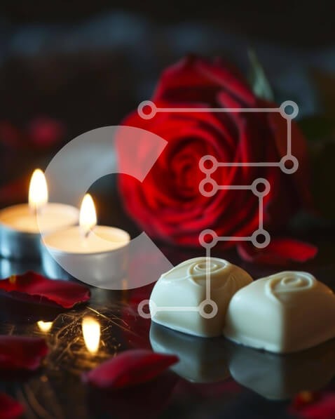 Υπάρχει δυνατότητα προσωποποίησης με δική σας φωτογραφία και προσαρμογής διαστάσεων κατόπιν παραγγελίας. Το συγεκεριμενο puzzle παρουσιαζει Αυτή η εικόνα παρουσιάζει ένα ρομαντικό τραπέζι με ένα κόκκινο τριαντάφυλλο, δύο κεριά και πολλά ζαχαρωτά λευκής σοκολάτας. Τα διάσπαρτα πέταλα προσθέτουν στη ρομαντική ατμόσφαιρα, καθιστώντας το ιδανικό για ειδικές περιστάσεις όπως η Ημέρα του Αγίου Βαλεντίνου. Επιπλέον μικρο