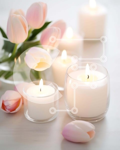 Υπάρχει δυνατότητα προσωποποίησης με δική σας φωτογραφία και προσαρμογής διαστάσεων κατόπιν παραγγελίας. Το συγεκεριμενο puzzle παρουσιαζει Η εικόνα παρουσιάζει ένα λευκό τραπέζι με πολλά κεριά και ροζ τουλίπες τοποθετημένες στην κορυφή του. Τα κεριά είναι αναμμένα, υποδηλώνοντας ότι χρησιμοποιούνται για κάποιο είδος τελετουργίας ή τελετής. Επιπλέον, υπάρχουν δύο μικρά γυάλινα μπολ στη μέση του τραπεζιού, τα οποία