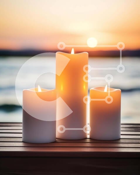 Υπάρχει δυνατότητα προσωποποίησης με δική σας φωτογραφία και προσαρμογής διαστάσεων κατόπιν παραγγελίας. Το συγεκεριμενο puzzle παρουσιαζει Η εικόνα παρουσιάζει τρία λευκά κεριά τοποθετημένα σε ένα ξύλινο τραπέζι κοντά στο νερό κατά τη διάρκεια του ηλιοβασιλέματος. Αυτά τα κεριά είναι ιδανικά για να δημιουργήσετε μια ζεστή και οικεία ατμόσφαιρα, ιδανικά για ρομαντικά δείπνα ή κοινωνικές συγκεντρώσεις. Μπορούν επίσ