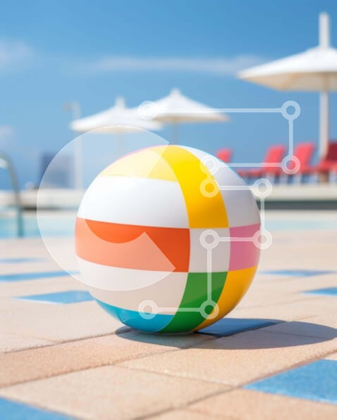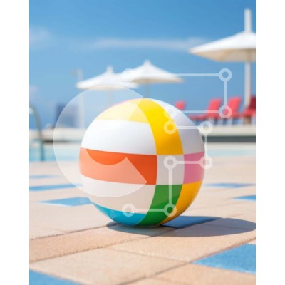 Υπάρχει δυνατότητα προσωποποίησης με δική σας φωτογραφία και προσαρμογής διαστάσεων κατόπιν παραγγελίας. Το συγεκεριμενο puzzle παρουσιαζει Η εικόνα δείχνει μια ζωντανή μπάλα παραλίας τοποθετημένη στο δάπεδο με πλακάκια κοντά σε μια εξωτερική πισίνα. Γύρω από την πισίνα υπάρχουν πολλές καρέκλες και ομπρέλες, που δείχνουν ότι οι επισκέπτες απολαμβάνουν το χρόνο τους στο νερό. Η παρουσία της μπάλας υποδηλώνει παιχνι