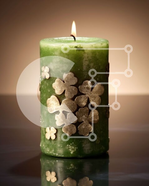 Υπάρχει δυνατότητα προσωποποίησης με δική σας φωτογραφία και προσαρμογής διαστάσεων κατόπιν παραγγελίας. Το συγεκεριμενο puzzle παρουσιαζει Αυτή η εικόνα παρουσιάζει ένα πράσινο κερί διακοσμημένο με τριφύλλια. Είναι τέλειο για την ημέρα του Αγίου Πατρικίου ή για οποιαδήποτε άλλη εορταστική περίσταση. Το κερί είναι το εστιακό σημείο της εικόνας και ξεχωρίζει σε ουδέτερο φόντο. Ένα μοναδικό puzzle που συνδυάζει ποι