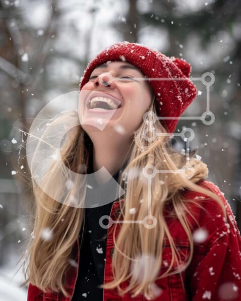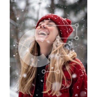Υπάρχει δυνατότητα προσωποποίησης με δική σας φωτογραφία και προσαρμογής διαστάσεων κατόπιν παραγγελίας. Το συγεκεριμενο puzzle παρουσιαζει Η εικόνα απεικονίζει μια νεαρή γυναίκα να γελά στο χιόνι που πέφτει. Βλέπεται να απολαμβάνει την ύπαιθρο, με ένα κόκκινο καπέλο στο κεφάλι, πιθανώς για ζεστασιά ή προστασία από το κρύο. Ένα μοναδικό puzzle που συνδυάζει ποιότητα, αισθητική και εμπειρία. Υλικό: Κατασκευασμένο