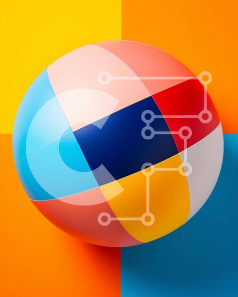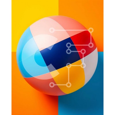 Υπάρχει δυνατότητα προσωποποίησης με δική σας φωτογραφία και προσαρμογής διαστάσεων κατόπιν παραγγελίας. Το συγεκεριμενο puzzle παρουσιαζει Η εικόνα παρουσιάζει μια πολύχρωμη μπάλα παραλίας που κάθεται πάνω σε ένα πορτοκαλί, κίτρινο και μπλε τετράγωνο φόντο. Η μπάλα τοποθετείται στη μέση των τετραγώνων, κάτι που μπορεί να υποδηλώνει ότι είναι μέρος κάποιου είδους παιχνιδιού ή δραστηριότητας. Θα μπορούσε επίσης να