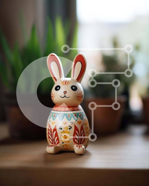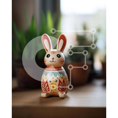 Υπάρχει δυνατότητα προσωποποίησης με δική σας φωτογραφία και προσαρμογής διαστάσεων κατόπιν παραγγελίας. Το συγεκεριμενο puzzle παρουσιαζει Αυτή η εικόνα παρουσιάζει ένα μικρό, πολύχρωμο ειδώλιο κουνελιού που κάθεται σε ένα τραπέζι δίπλα σε πολλά φυτά σε γλάστρες. Το ειδώλιο του κουνελιού είναι πιθανότατα μέρος μιας διακόσμησης με θέμα το Πάσχα ή ενός ειδικού δώρου. Υπάρχουν φυτά εσωτερικού χώρου στο βάθος, προσθέ