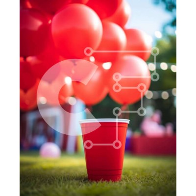 Υπάρχει δυνατότητα προσωποποίησης με δική σας φωτογραφία και προσαρμογής διαστάσεων κατόπιν παραγγελίας. Το συγεκεριμενο puzzle παρουσιαζει Η εικόνα δείχνει ένα κόκκινο πλαστικό κύπελλο που κάθεται στο γρασίδι δίπλα σε πολλά μπαλόνια, τα οποία είναι διάσπαρτα σε όλη την περιοχή. Το κόκκινο κύπελλο φαίνεται να ακουμπάει πάνω σε μία από τις πολλές μπάλες με έντονα χρώματα, υποδηλώνοντας ότι είναι μέρος ενός υπαίθριο